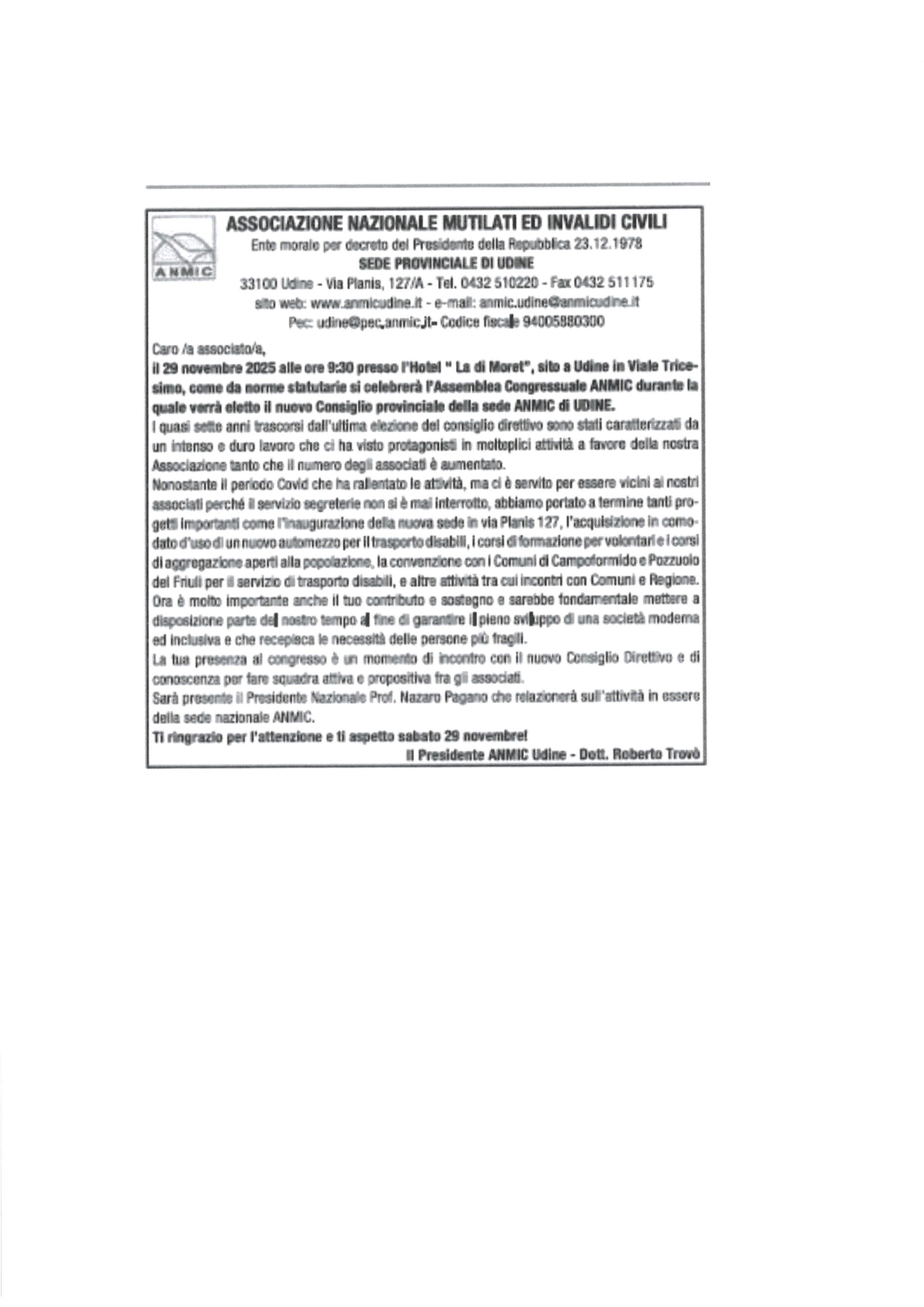 ASSEMBLEA CONGRASSUALE ANMIC UDINE – AVVISO Data dell'articolo Novembre 27, 2025 Articolo precedente: Corso Ortoterapia in Città